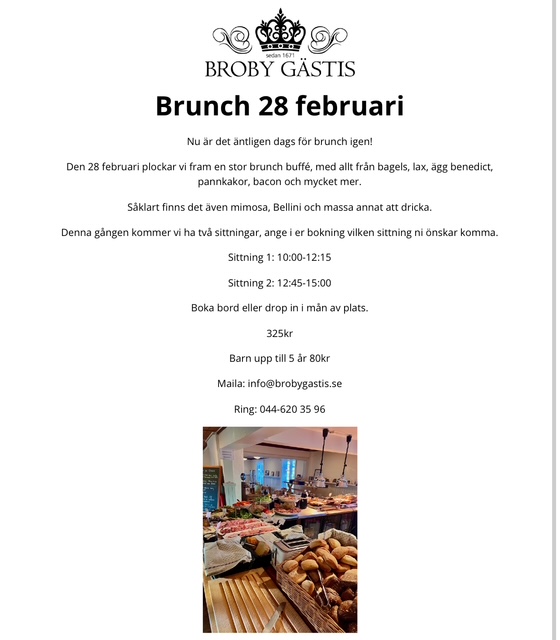 Den 28 februari dukar vi fram en stor brunchbuffé med allt du kan tänka dig.